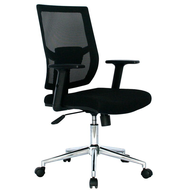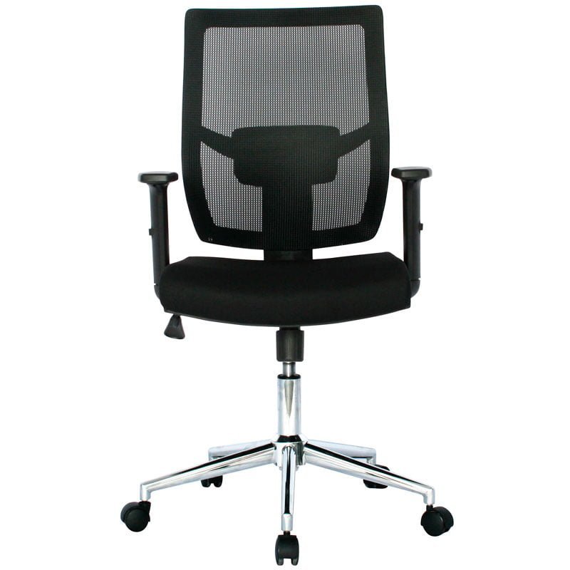 Silla gerencial ergonómica, cómoda, ideal para largas jornadas laborales, espaldar en malla traslucida de alta resistencia, apoyo lumbar graduable en profundidad, brazos graduables en polipropileno, asiento en espuma de alta densidad, tapizado en tela micro suave, sistema basculante, rodachinas de suave rodamiento y rápido cambio de dirección.