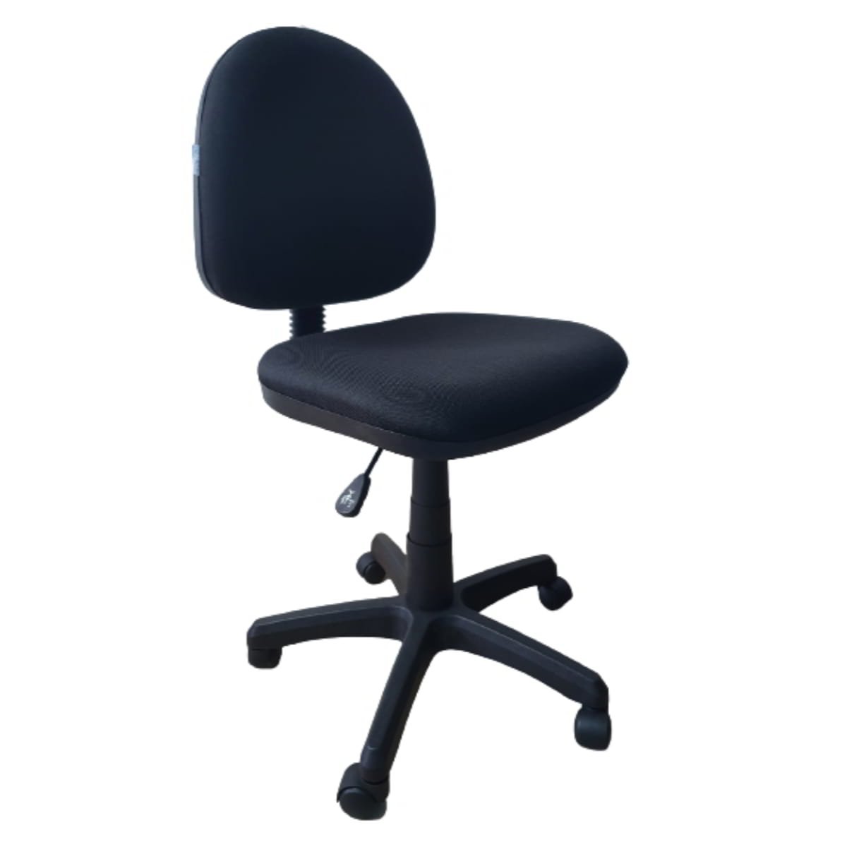 Silla secretarial ergonómica, cómoda, ideal para largas jornadas laborales, espaldar medio, sistema fijo, asiento en espuma de alta densidad, tapizada en paño, rodachinas de suave rodamiento y rápido cambio de dirección.